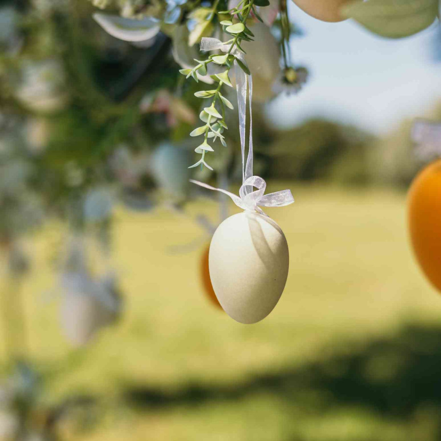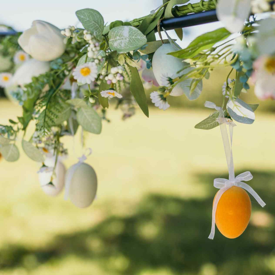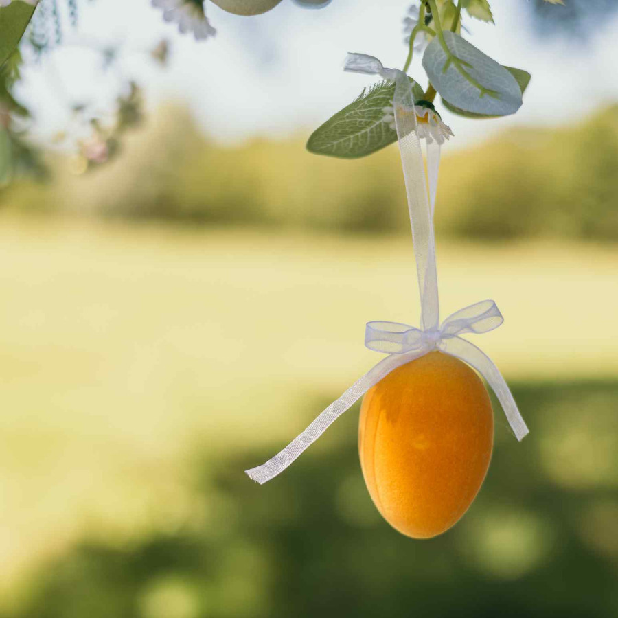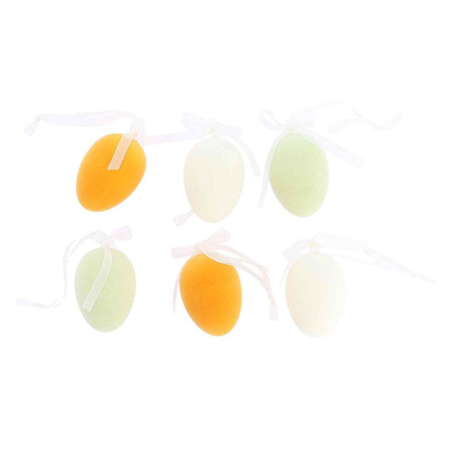 Beauty Home 6 Βελούδινα αυγά με κορδέλα σε 3 χρώματα Ø4×6,5cm