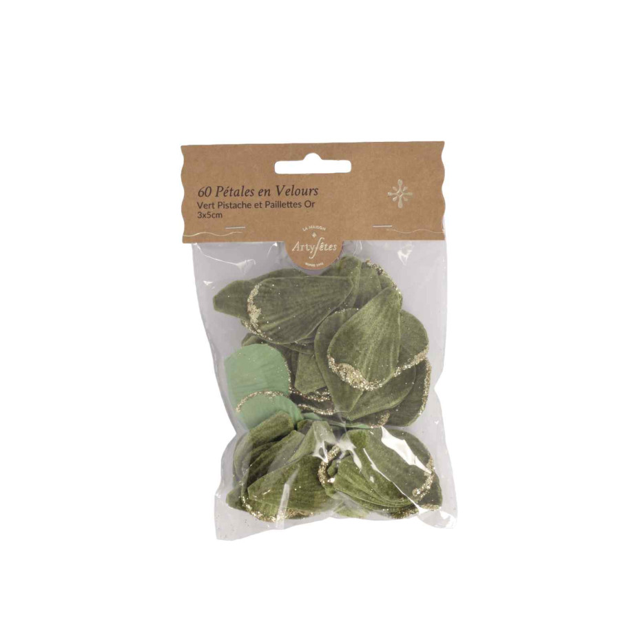 Beauty Home 60 Πράσινα Βελούδινα Πέταλα με Χρυσό Γκλίτερ, 3×5εκ.