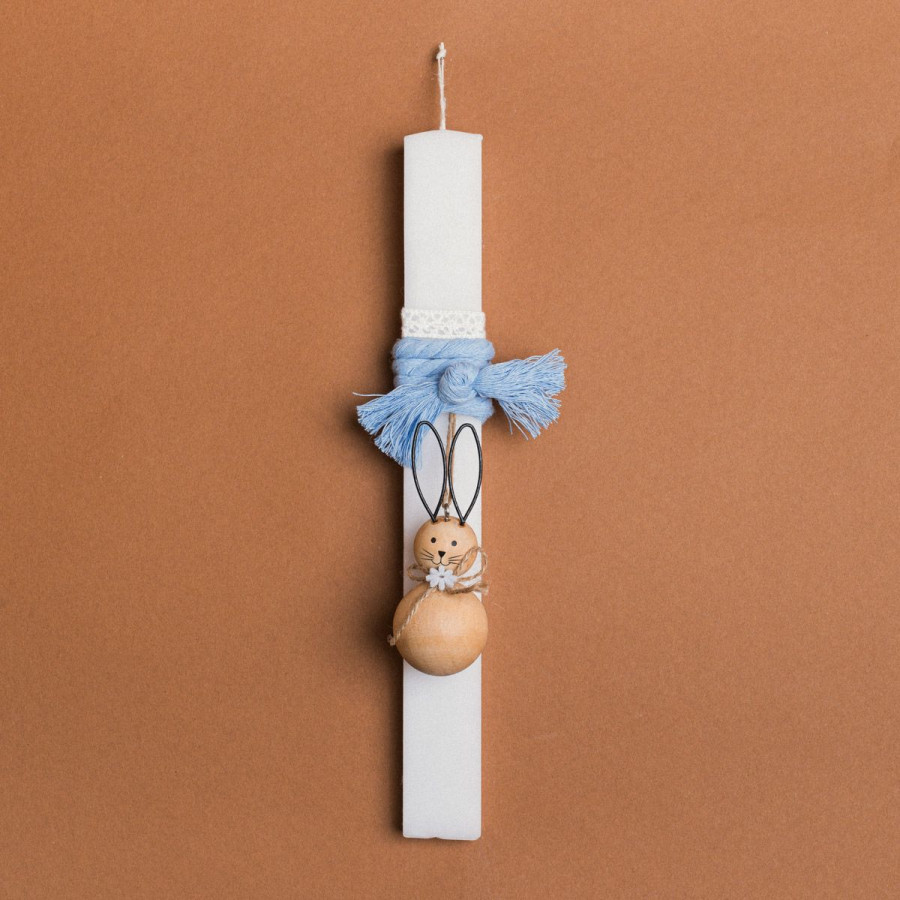 Χειροποίητη λαμπάδα σε απαλό σιέλ χρώμα, ιδανικό δώρο για το Πάσχα. Περιλαμβάνει κουτί δώρου, έτοιμη να προσφερθεί στους αγαπημένους σας.