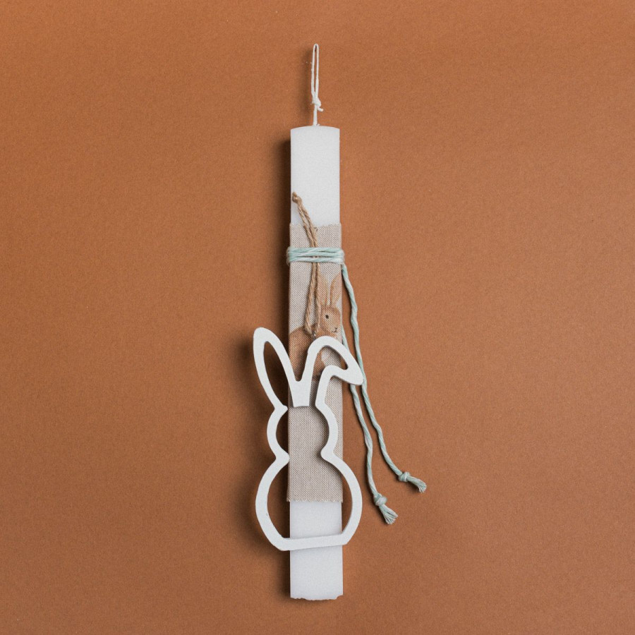 Beauty Home ΛΑΜΠΑΔΑ 33cm ΞΥΛΙΝΟ ΠΕΡΙΓΡΑΜΜΑ ΛΑΓΟΣ ΛΕΥΚΟΣ ΣΕ ΣΥΣΚΕΥΑΣΙΑ ΔΩΡΟΥ