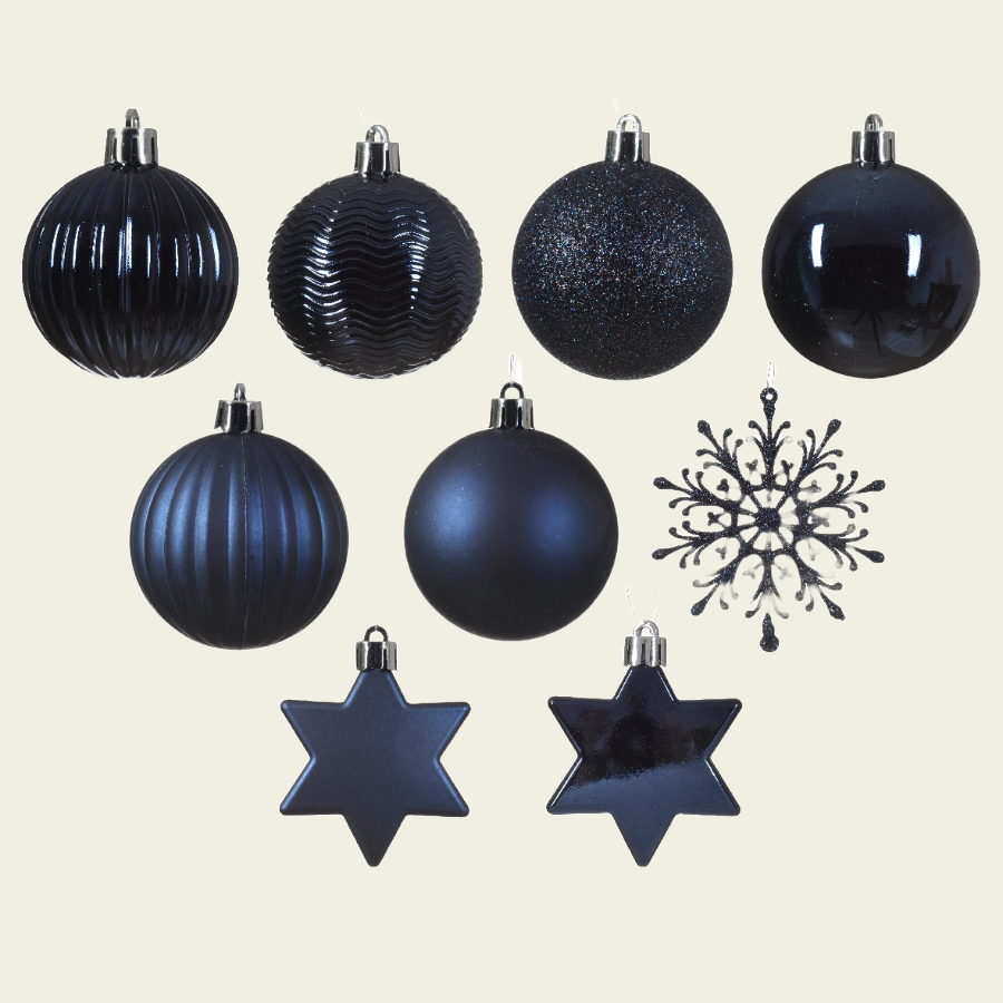 Δώστε λάμψη και πολυτέλεια στο χριστουγεννιάτικο δέντρο σας με τα χριστουγεννιάτικα στολίδια σε σκούρα μπλέ απόχρωση.