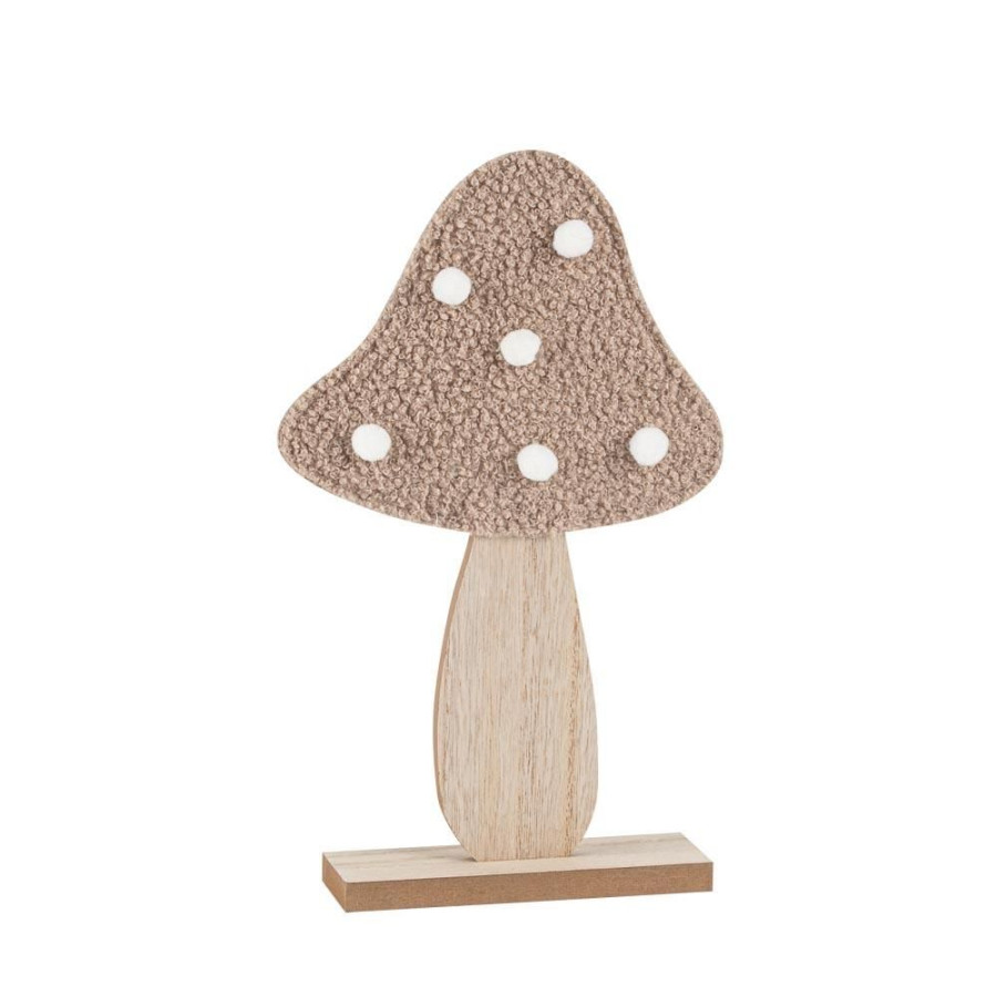 Beauty Home Μανιτάρι σε βάση, ξύλο με μπουκλέ Με φουντάκια, ταμπά και λευκό 30 x 18 cm
