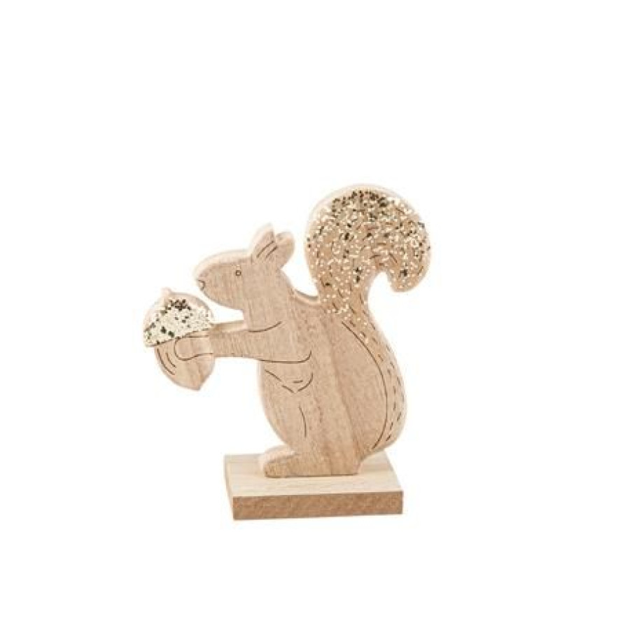 Beauty Home Σκίουρος ξύλινος με χρυσό γκλίτερ 10.5 x 11.7 cm