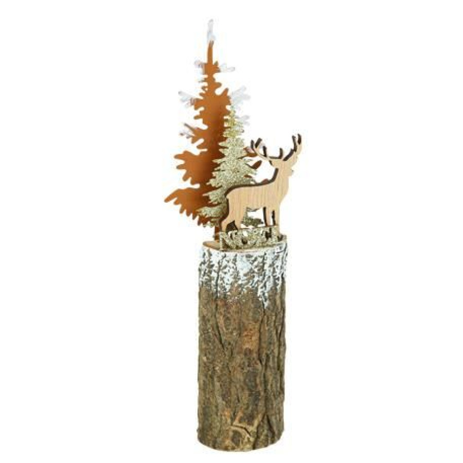 Beauty Home Χριστουγεννιάτικο διακοσμητικό σε ξύλινη βάση με χρυσό γκλίτερ 5 x 24 cm