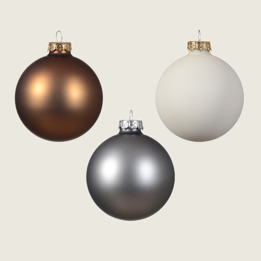 Δώστε λάμψη και πολυτέλεια στο χριστουγεννιάτικο δέντρο σας με τα χριστουγεννιάτικα στολίδια σε χρυσή, ασημί και λευκή μάτ απόχρωση.