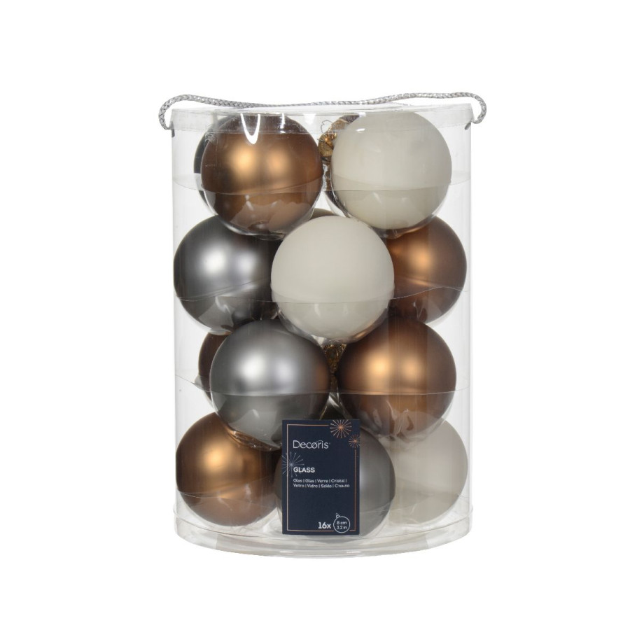 Χριστουγεννιάτικες ΓΥΑΛΙΝΕΣ ΜΠΑΛΕΣ 3 ΧΡΩΜΑΤΑ 8 cm ΣΕΤ 16 ΤΜΧ – Ιδανικά για το Χριστουγεννιάτικο Δέντρο σας!