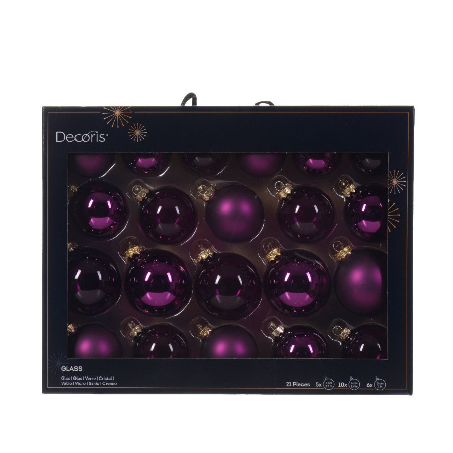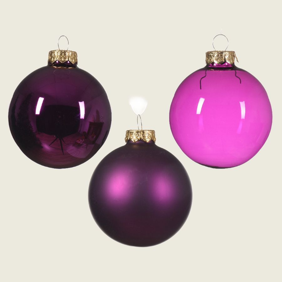 Δώστε λάμψη και πολυτέλεια στο χριστουγεννιάτικο δέντρο σας με τις ιδιαίτερες μπάλες σε βιολετί απόχρωση.