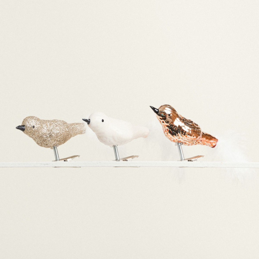 Χριστουγεννιάτικα ΠΟΥΛΙΑ ΣΕΤ 3 ΤΜΧ – Ιδανικά για το Χριστουγεννιάτικο Δέντρο σας! Δώστε λάμψη και πολυτέλεια στο χριστουγεννιάτικο δέντρο σας με τα πουλάκια σε τρεία μοναδικά σχέδια. Χαρακτηριστικά: • Χρώμα: Λευκό & Χρυσό • Τοποθέτηση: Με ξύλινο μανταλάκι • Διαστάσεις: 3 x 8 x 3,5 cm Προσθέστε το χριστουγεννιάτικο στολίδι στη συλλογή σας και δημιουργήστε ένα εντυπωσιακό χριστουγεννιάτικο δέντρο.