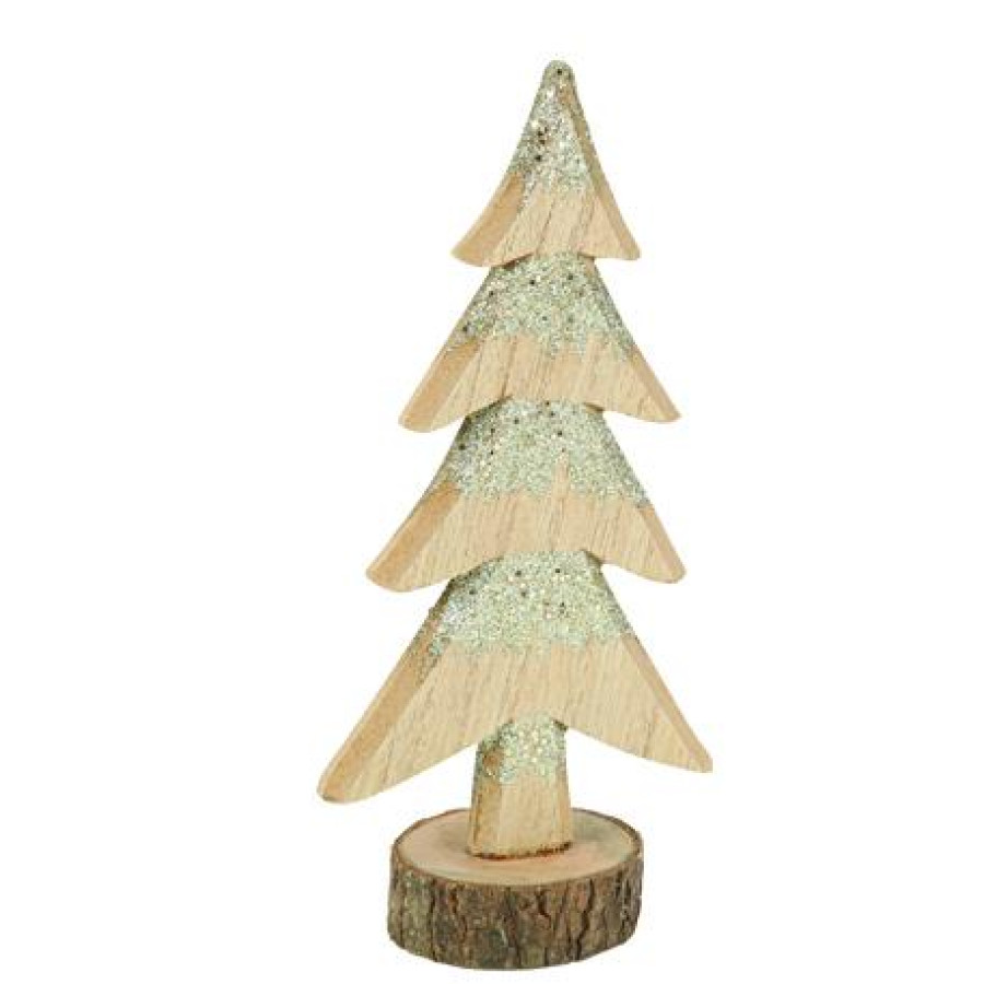 Προσθέστε λίγη μαγεία στις γιορτές σας με αυτό το όμορφο ξύλινο έλατο πάνω σε κορμό, διακοσμημένο με χρυσό γκλίτερ που λαμπυρίζει. Διαστάσεις: Ø7 x 27 cm.
