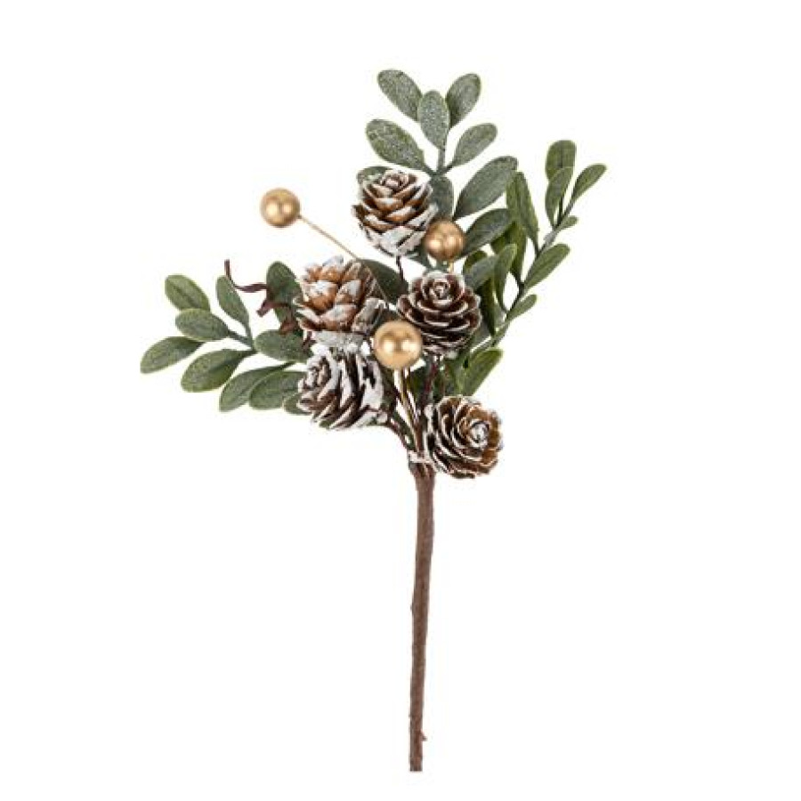 Beauty Home Κλαδί  με μούρα και κουκουνάρια χιονισμένο, πράσινο και χρυσό 19 cm