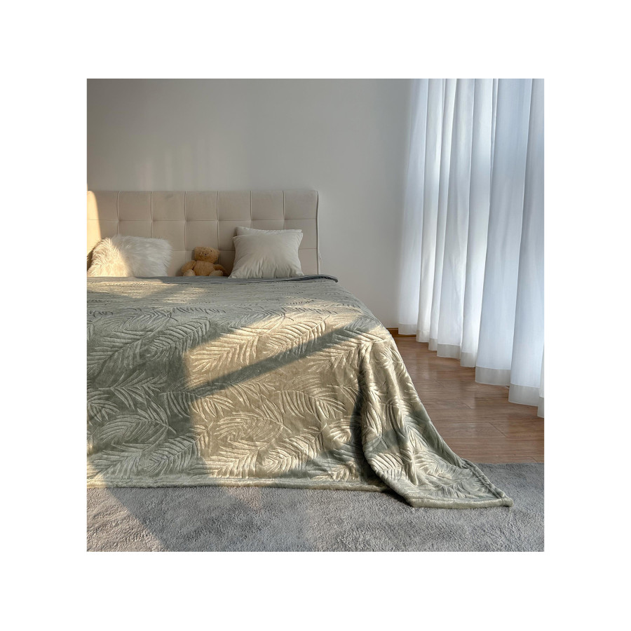 Κουβερτάκι ριχτάρι flannel με ανάγλυφο σχέδιο 160Χ220 χακί