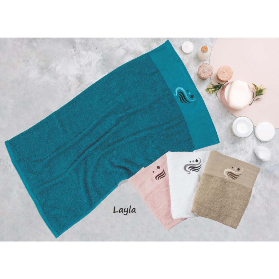 Σετ πετσέτα 3τμχ με κέντημα στη φάσα Σx.Layla σε συσκευασία pvc 430 gsm 100% cotton