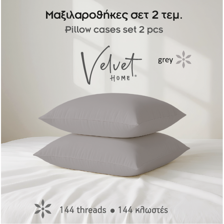 Μαξιλαροθήκες μονόχρωμες Σχ.Rainbow 52x72cm poly/cotton 144 κλωστών Grey